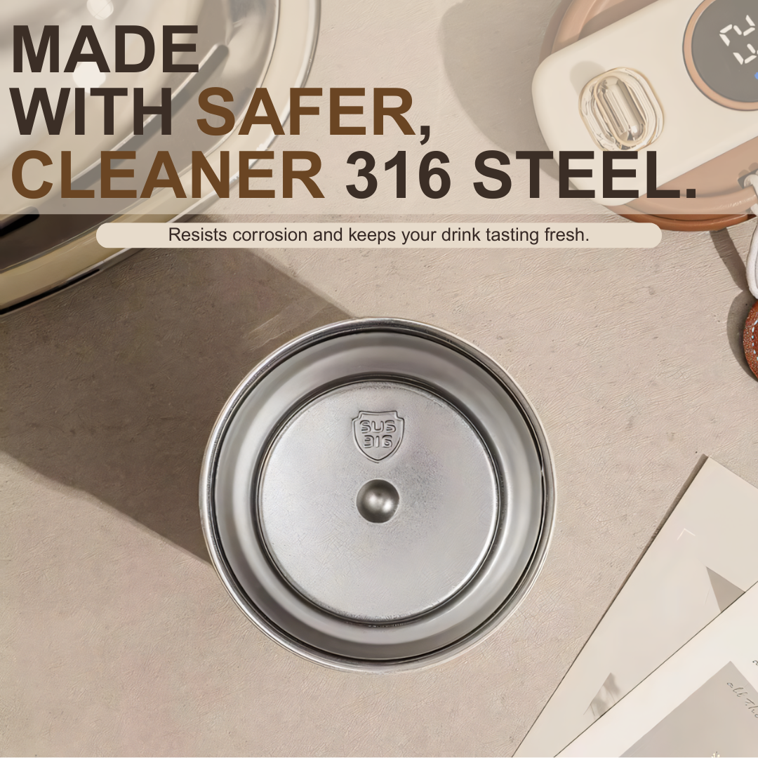 With a built-in temperature display, the Toastifi Mug lets you know exactly how hot (or cold) your drink is — no more surprises. Its 316 stainless steel insulation locks in heat for up to 12 hours, keeping your coffee, tea, or cocoa perfectly warm from the first sip to the last.